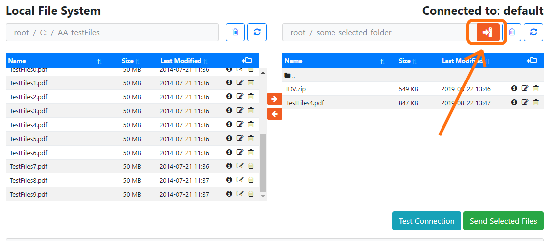 located to the left of the remote directory path, you can request files to be uploaded directly into the chosen file area folder.